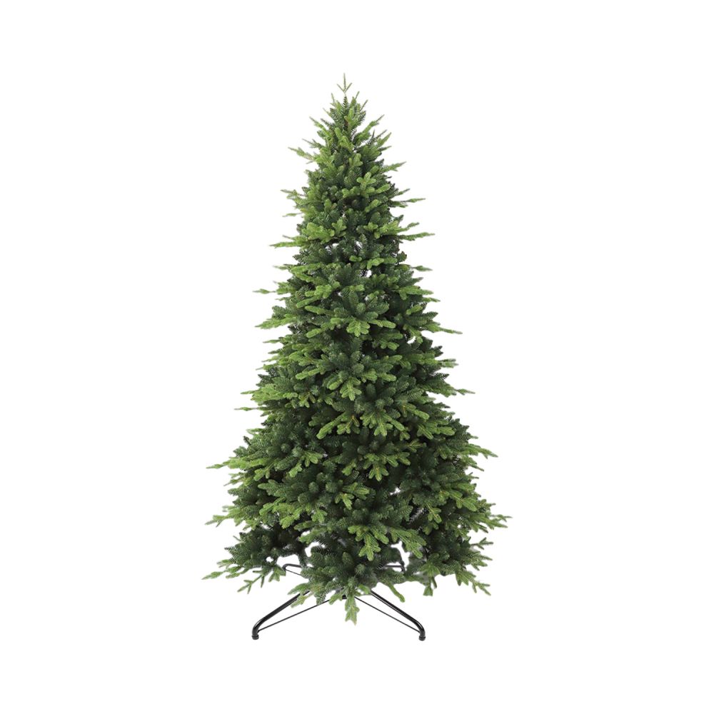 ბუნებრივის მსგავსი ნაძვის ხე, დრეკადი მეტალის ტოტებით და ჯანმრთელობისთვის უსაფრთხო მასალისგან დამზადებული შერეული ორი ფერის, სილიკონის და PVC წიწვით . მეტალის მყარი სადგამით და მთავარი ღერძით.