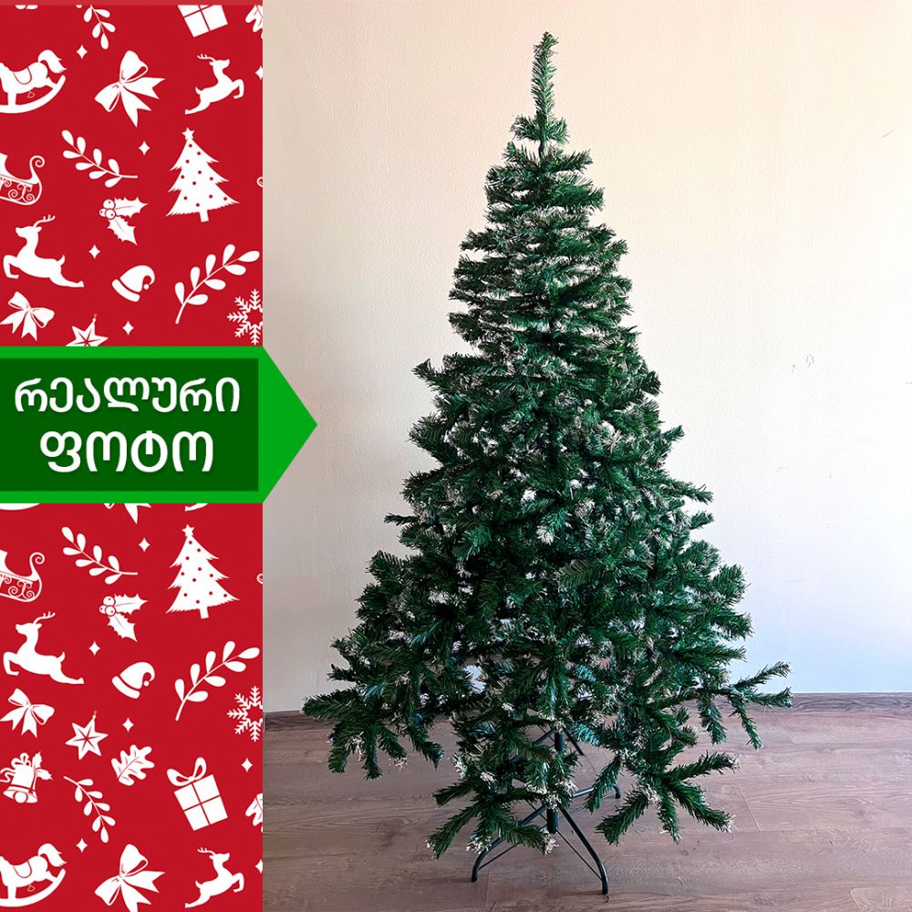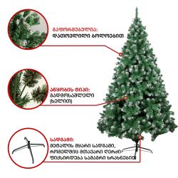 ნაძვის ხე დათოვლილი ბოლოებით,გამძლე დრეკადი მეტალის ტოტებით და ჯანმრთელობისთვის უსაფრთხო მასალისგან დამზადებული წიწვებით. მეტალის მყარი სადგამით და მთავარი ღერძით.
